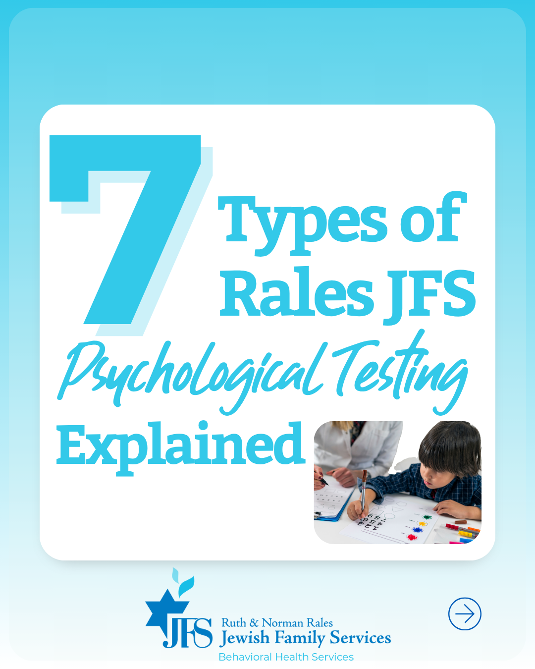 Looking for answers this summer? Rales JFS offers specialized psychological evaluations tailored to your child's unique needs, from ADHD and autism assessments to gifted IQ testing, personality profiles, and learning disability evaluations.
