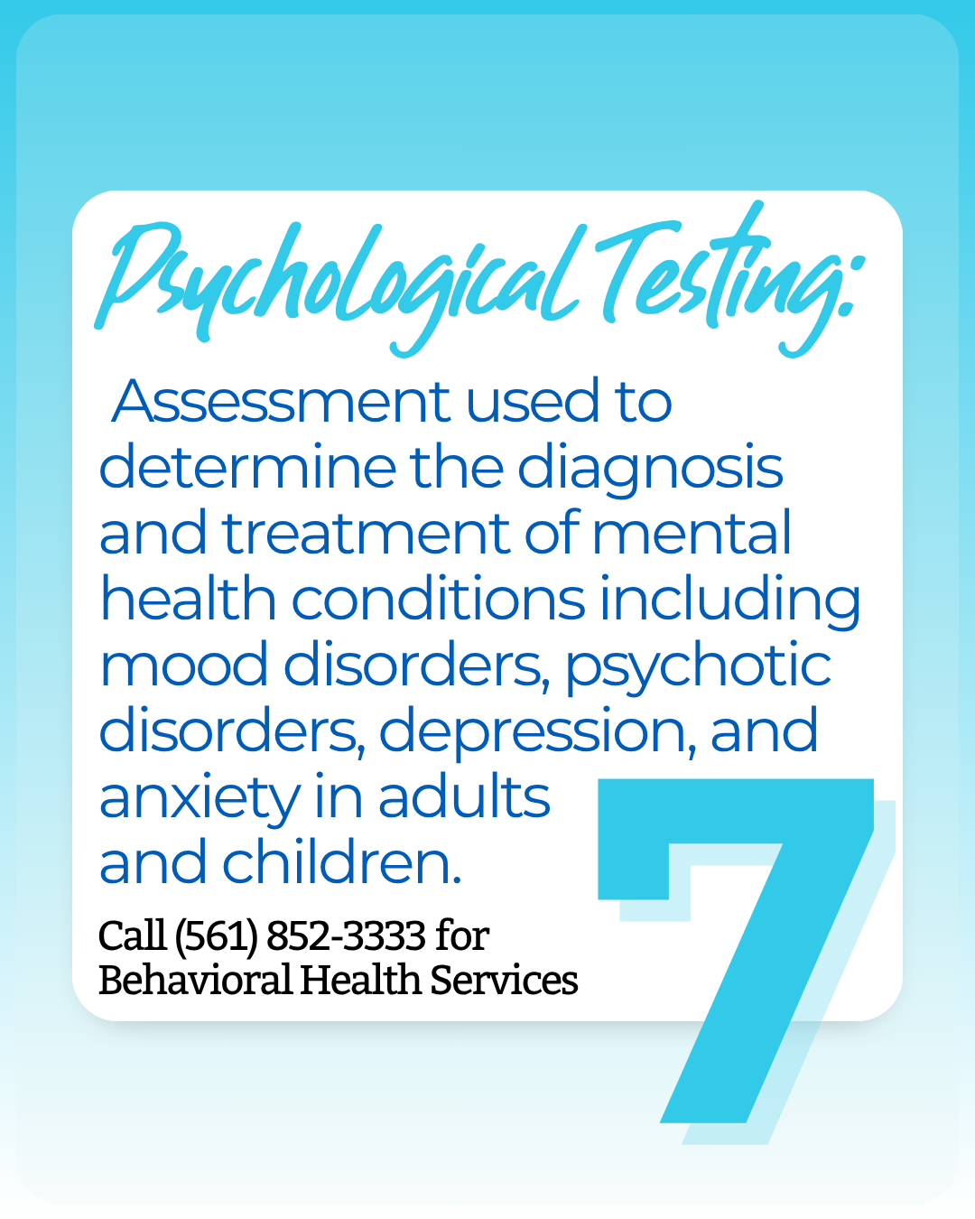 Call (561) 852-3333 to schedule your assessment today.